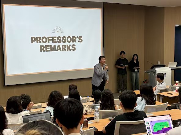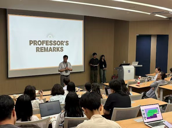 8月8日至9日,同学们以小组形式展开团队合作,围绕项目主题“时光织锦:当传统亚洲邂逅未来”进行深入探讨与研究。8月9日下午的汇报展示上,各小组分别从文化交流、创意短片制作、饮食研究和跨国交流平台四个主题,展示学习交流成果,并最终获得了不同的奖项。首尔大学通识教育学院院长Bumsoo Kim 教授在点评中高度赞扬了同学们的创新思维与合作精神,鼓励大家将跨文化学习的收获融入未来的学术与生活中;元培学院副院长孙飞宇老师逐一点评了四组同学的展示作品,并结合作品内容深度阐释了通识教育与大学的内涵与核心,让同学们受益匪浅。